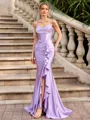 Turn heads in this elegant sheath prom dress, featuring delicate spaghetti straps and a sleeveless design. The floor-length silhouette flows gracefully, while soft ruffles add a touch of romance and sophistication, perfect for making a memorable entrance at any formal event.