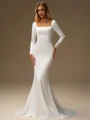 • Sheath Square Long Sleeves Sweep Train Charmeuse Wedding Dress