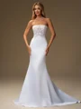 • Sheath Straight Appliques Lace Sweep Train Satin Wedding Dress