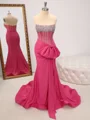 • Sheath Straight Bow Sweep Train Jersey Corset Dress