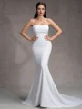 • Sheath Straight Pleated Court Train Stretch Crepe Wedding Dress
