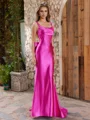 A chic sheath dress featuring straps and a sleeveless design, with a corset bodice that creates a flattering, structured fit. A delicate bow accent adds a touch of charm, while the sweep train enhances the elegant flow of the dress. Ideal for formal occasions or special events.