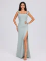 The Sheath Straps Sleeveless Bridesmaid Dress is a sleek and refined choice for a bridal party. Featuring a sheath silhouette, this dress hugs the body closely, creating a slender and elongated look. The sleeveless design with delicate straps offers a minimalist yet elegant touch. Pleated detailing adds texture and visual interest to the bodice, enhancing the dress's sophisticated appeal. Made from airy chiffon, the floor-length skirt flows gracefully, making this dress both comfortable and stylish for any wedding occasion.