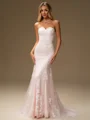 Dazzle in sophistication with this sheath wedding dress, boasting a sweetheart neckline and sleeveless design crafted from delicate lace. With its sweeping train, this gown offers an elegant and understated silhouette, perfect for the bride seeking classic beauty and timeless charm on her special day.The inner layer remains unchanged, only the outer layer changes.