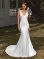 Sheath V-neck Appliques Lace Chapel Train Lace Wedding Dress