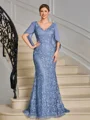 A stunning sheath Mother of the Bride dress featuring a V-neckline and sleeveless design. The dress is embellished with intricate appliqu