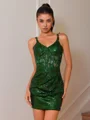 This sheath dress features a flattering V-neck and sleeveless design. Adorned with delicate lace appliques and sparkling sequins, it offers a glamorous and elegant look. The corset bodice shapes the waist, while the short/mini length creates a chic silhouette