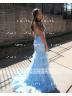 A graceful sheath dress with a V-neckline and sleeveless design, crafted from soft chiffon. Adorned with intricate lace appliques, it offers a romantic and elegant touch. The sweep train adds a graceful flow, making it perfect for weddings or formal occasions.