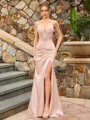 Make a dazzling statement in this sheath prom dress featuring a flattering V-neckline and sleeveless design. The floor-length silhouette is embellished with sparkling beadwork, creating a glamorous and elegant look perfect for standing out at any formal occasion.
