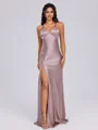 • Sheath V-neck Floor-Length Silk Like Satin Bridesmaid Dress