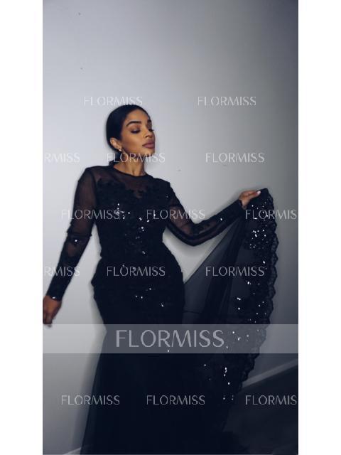 • Trumpet/Mermaid Sheer Neck Sweep Train Tulle Evening Dresses With Appliques Lace