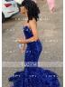 Trumpet/Mermaid Sweetheart Sweep Train Velvet Sequins Evening Dresses With Ruffles