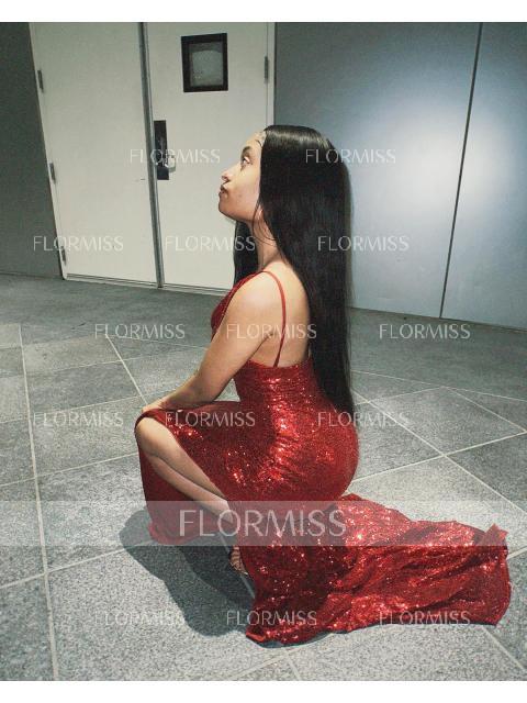 • Trumpet/Mermaid V-neck Court Train Sequins Evening Dresses With Leg Slit