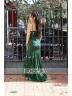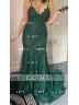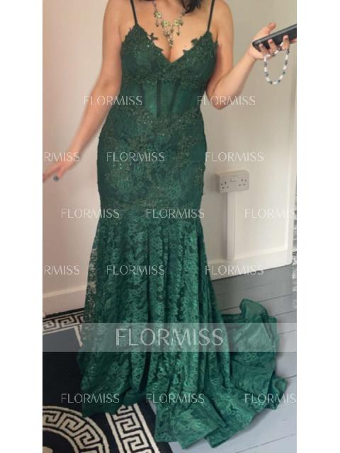Trumpet/Mermaid V-neck Sweep Train Lace Prom Dresses With Appliques Lace