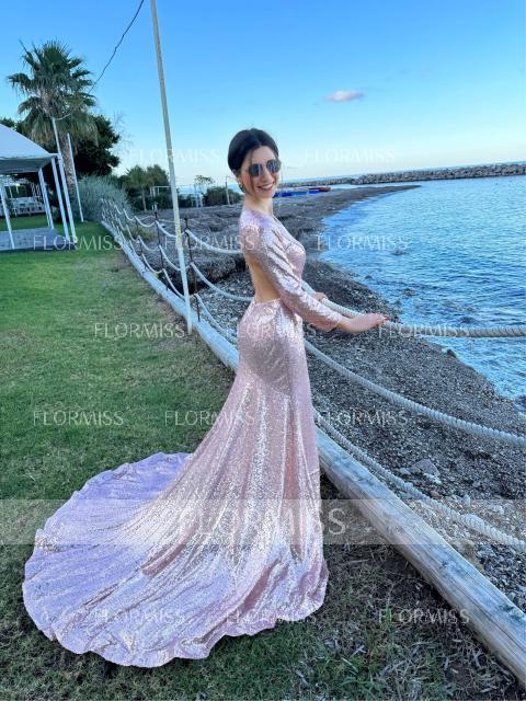 • Trumpet/Mermaid V-neck Court Train Sequins Evening Dresses With Ruffles